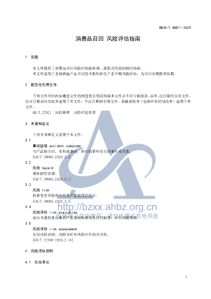DB34/T 4887-2024 消费品召回 风险评估指南