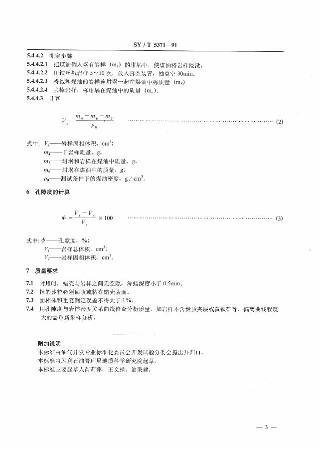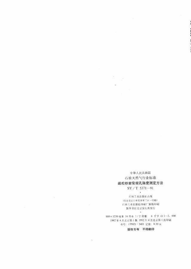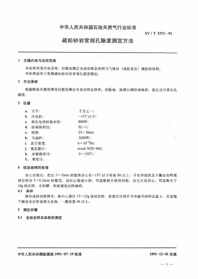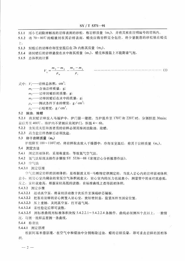 SY/T 5371-1991 疏松砂岩常规孔隙度测定方法