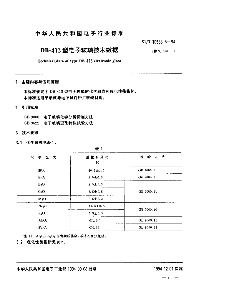 SJ/T 10588.5-1994 DB-413型电子玻璃技术数据