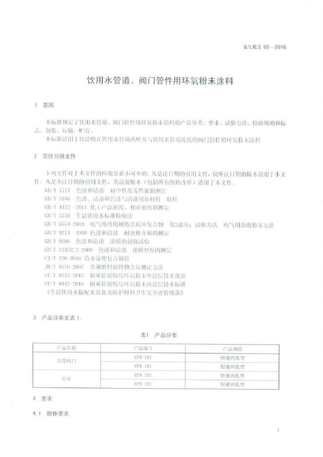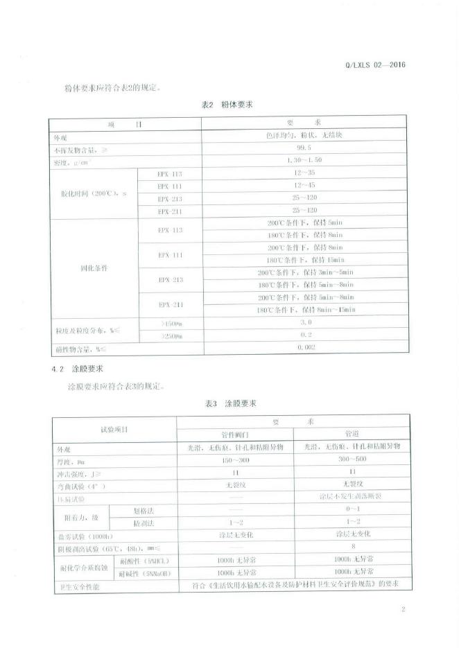 Q/LXLS 02-2016 饮用水管道、阀门管件用环氧粉末涂料