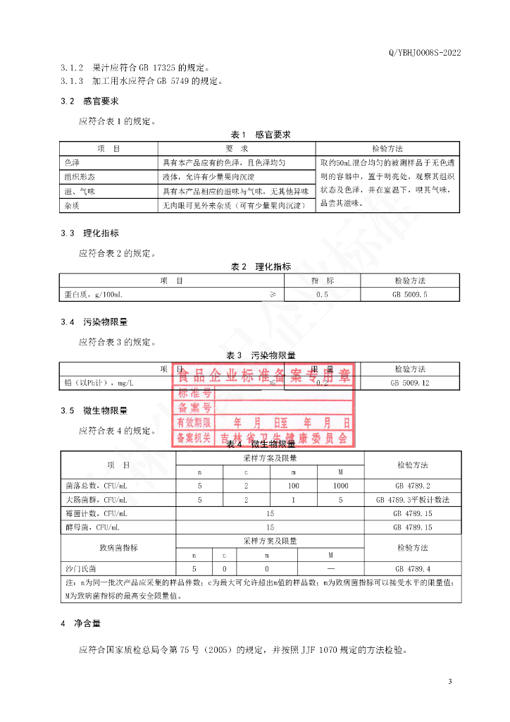 Q/YBHJ 0008S-2022 苹果梨胶原肽复合饮品