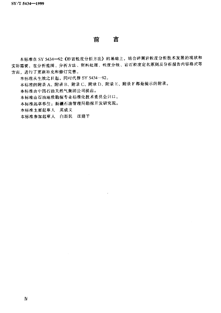 SY/T 5434-1999 碎屑岩粒度分析方法