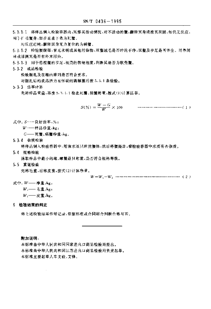 SN/T 0436-1995 出口活河蟹检验规程