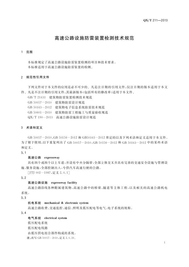 QX/T 211-2013 高速公路设施防雷装置检测技术规范