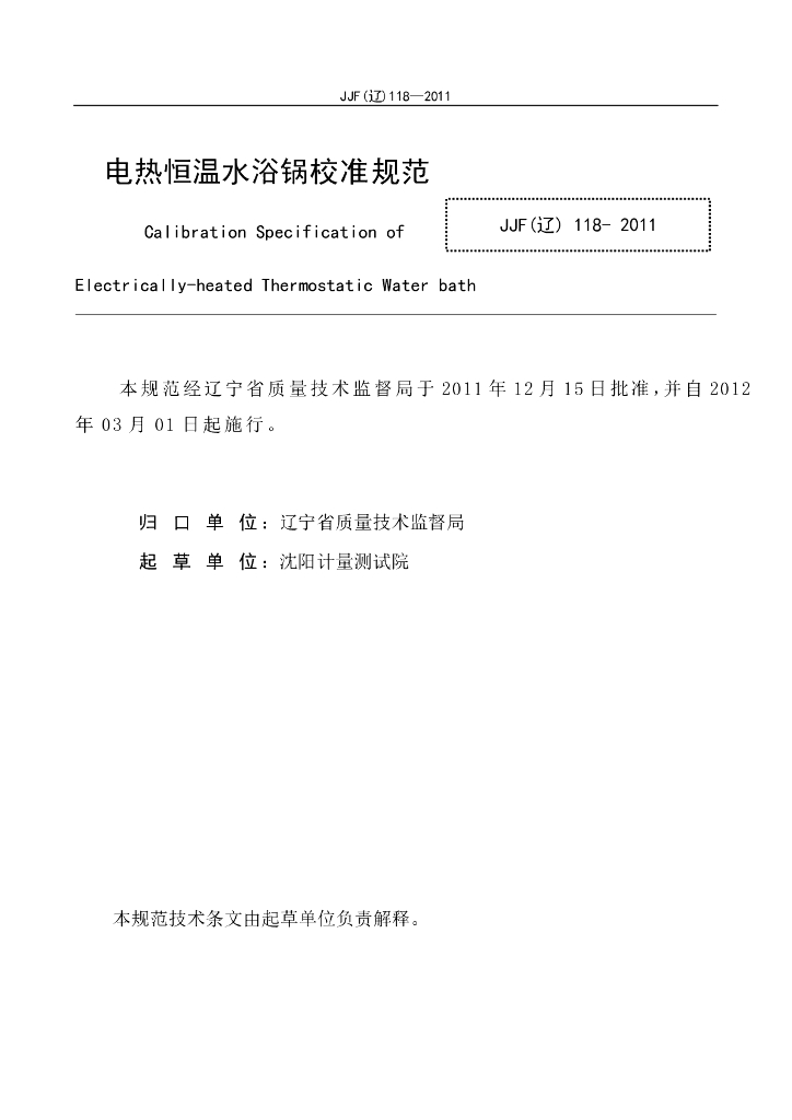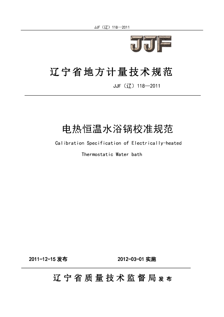 JJF(辽)118-2011 电热恒温水浴锅校准规范