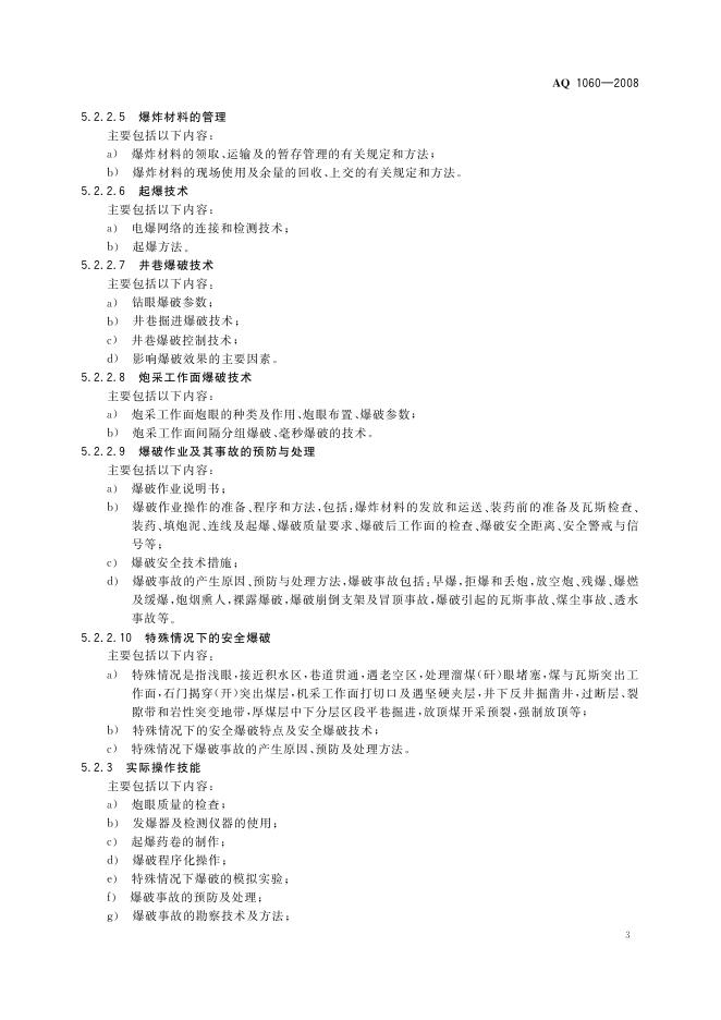 AQ/T 1060-2008 煤矿井下爆破工安全技术培训大纲及考核标准