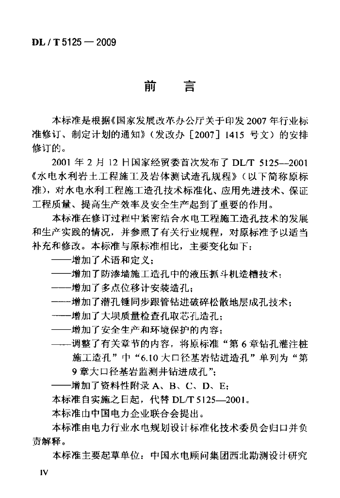 DL/T 5125-2009 水利岩土工程施工及岩体测试造孔规程