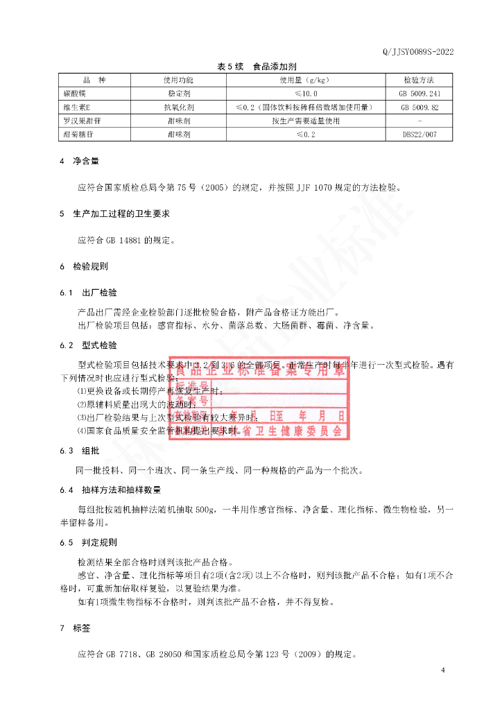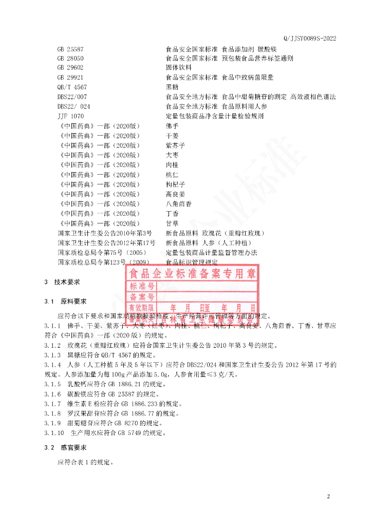 Q/JJSY 0089S-2022 佛手玫瑰固体饮料