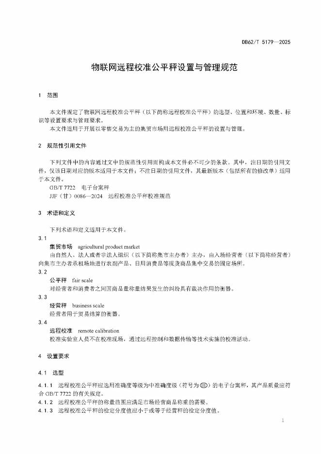 DB62/T 5179-2025 物联网远程校准公平秤设置与管理规范