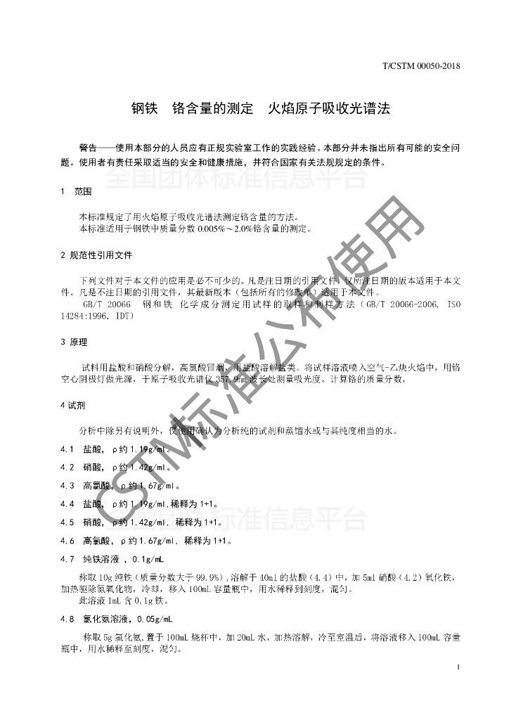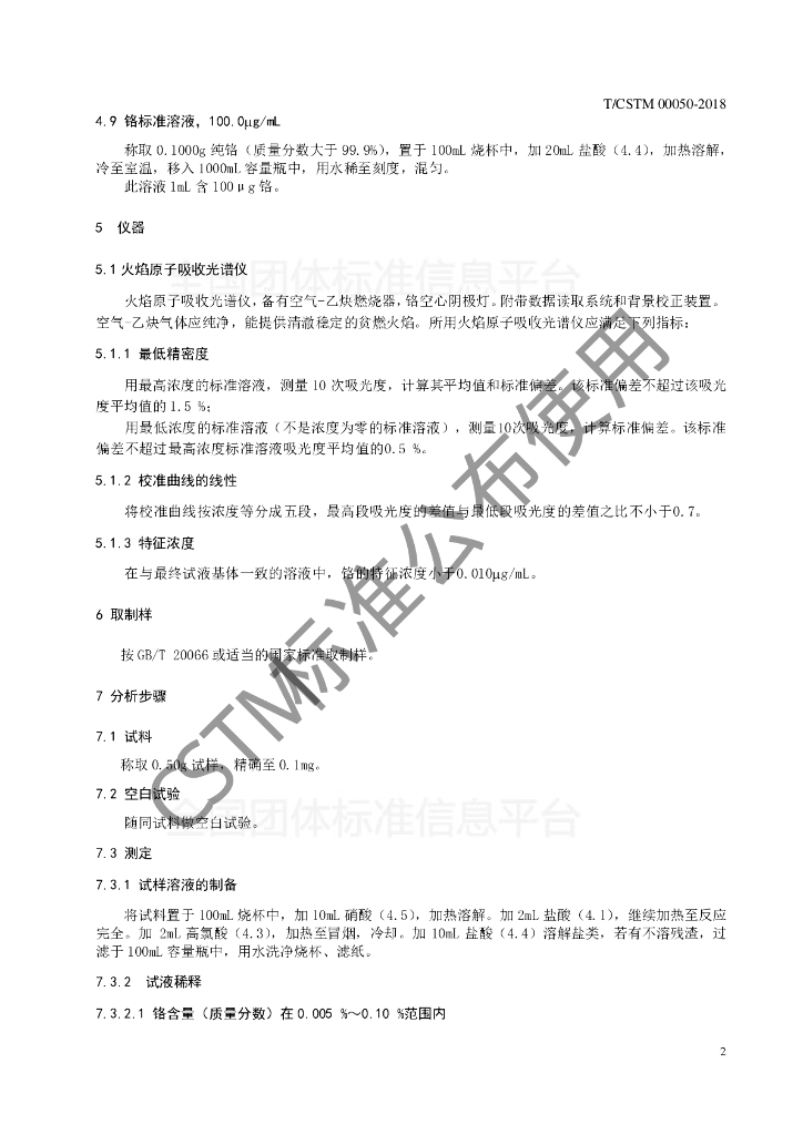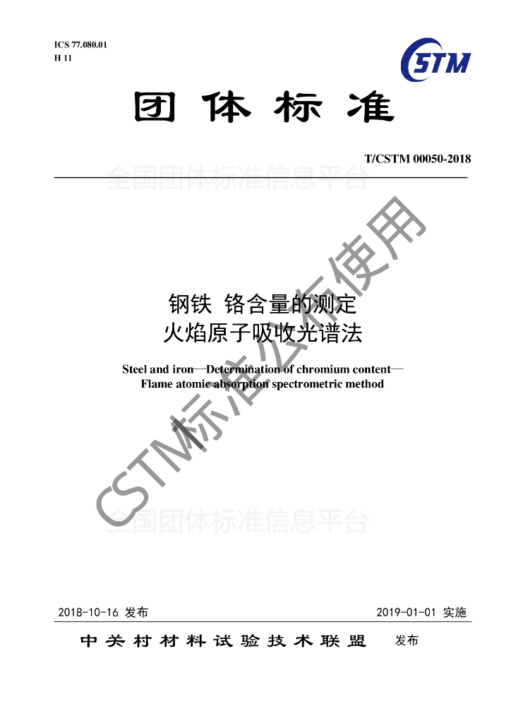 T/CSTM 00050-2018 钢铁 铬含量的测定 火焰原子吸收光谱法