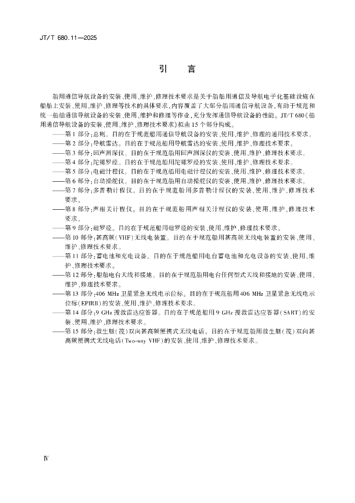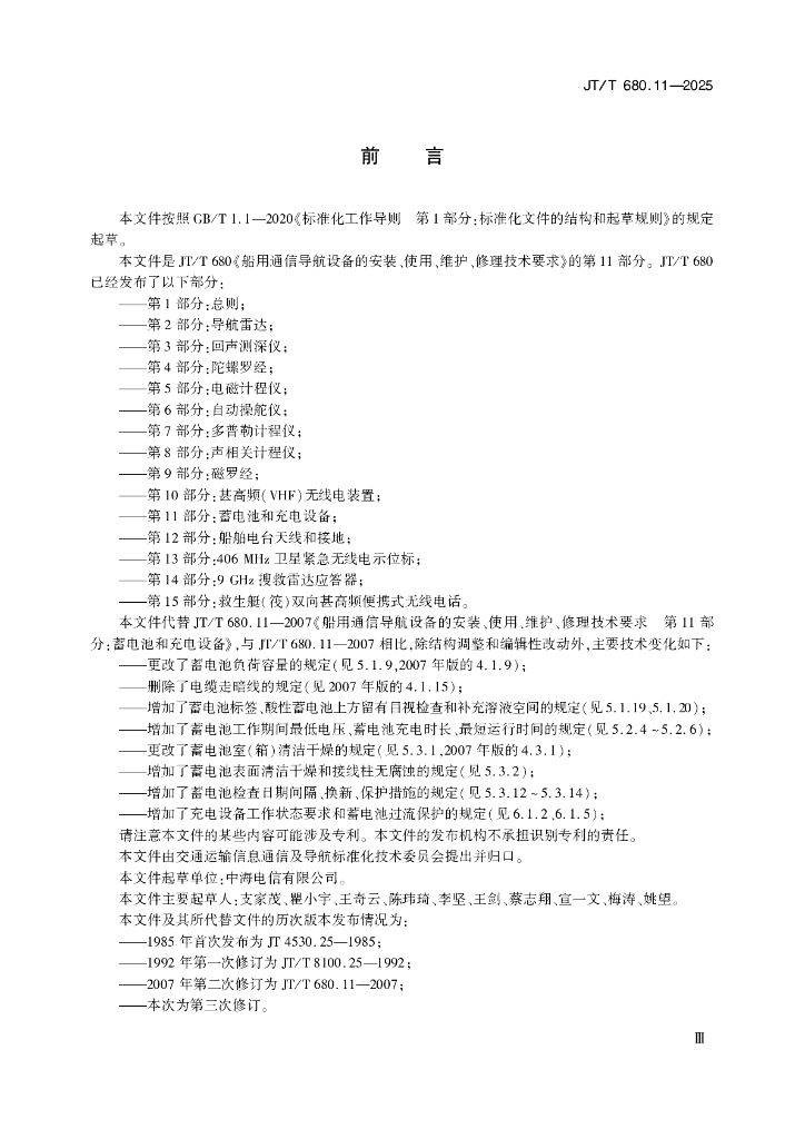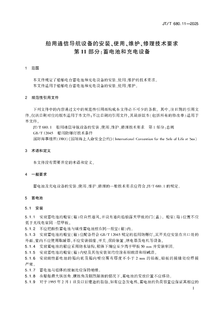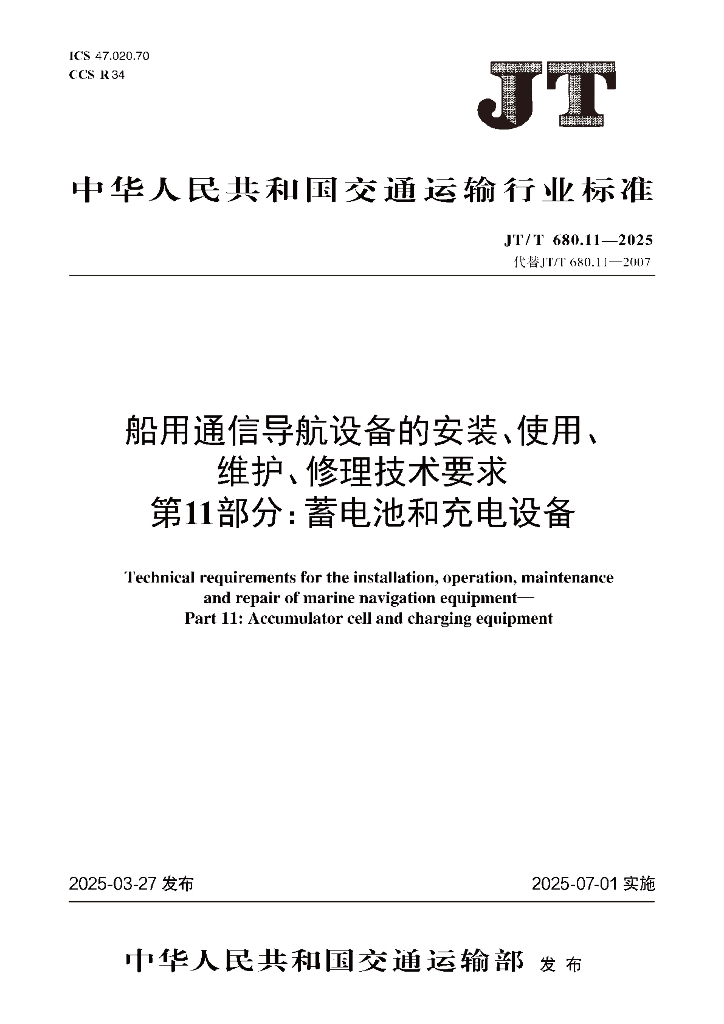 JT/T 680.11-2025 船用通信导航设备的安装、使用、维护、修理技术要求 第11部分:蓄电池和充电设备