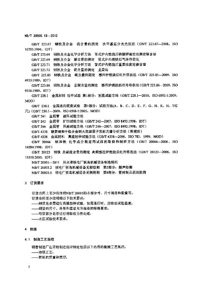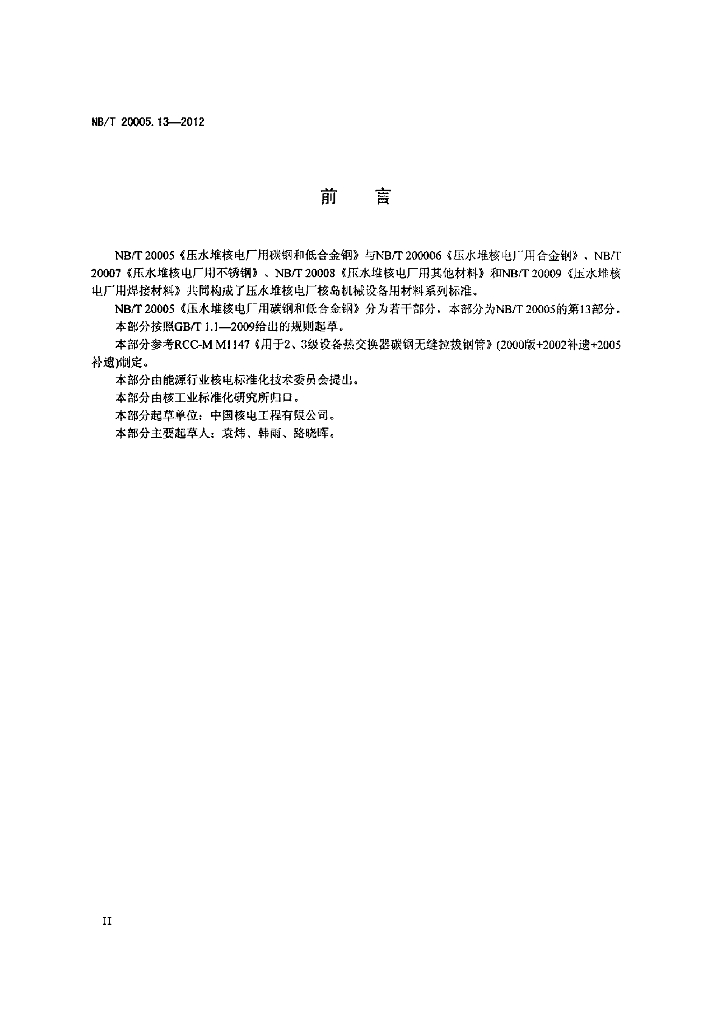 NB/T 20005.13-2012 压水堆核电厂用碳钢和低合金钢 第13部分:2、3级热交换器传热管用无缝冷拔钢管