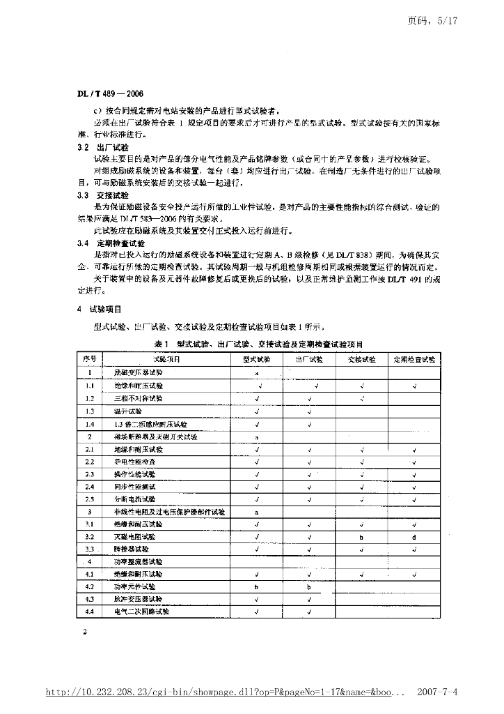 DL/T 489-2006 大中型水轮发电机静止整流励磁系统及装置试验规程