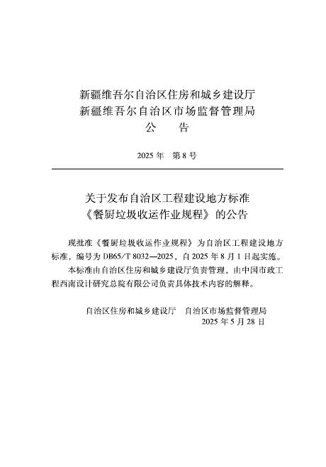 DB65/T 8032-2025 餐厨垃圾收运作业规程