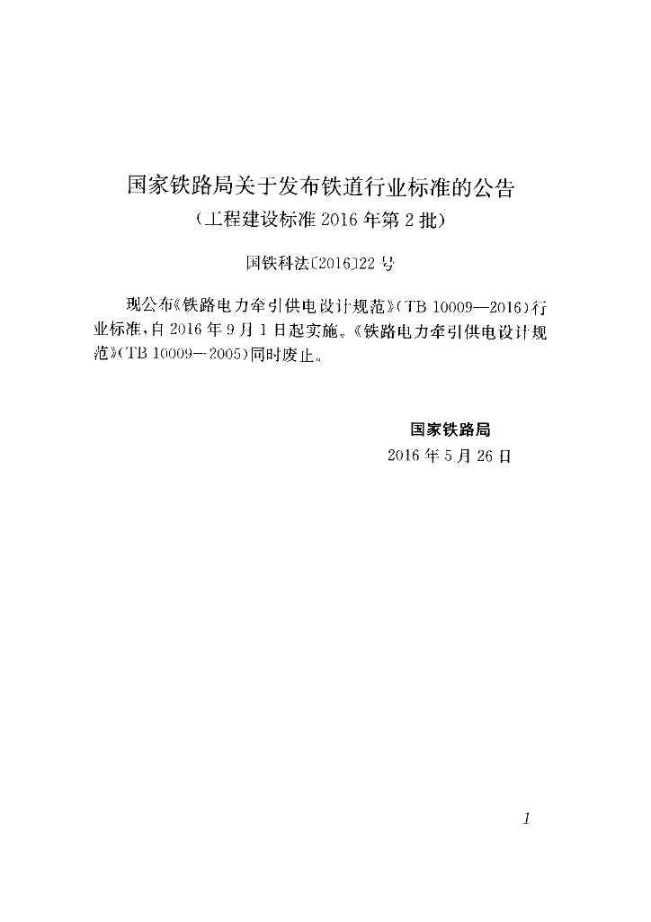 TB 10009-2016 铁路电力牵引供电设计规范