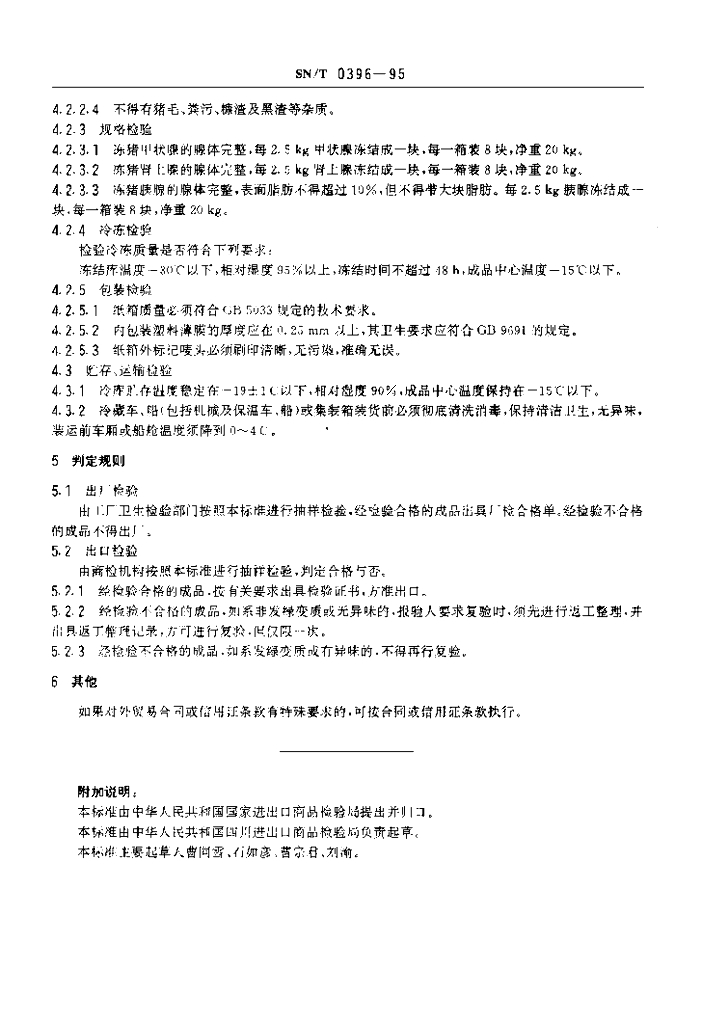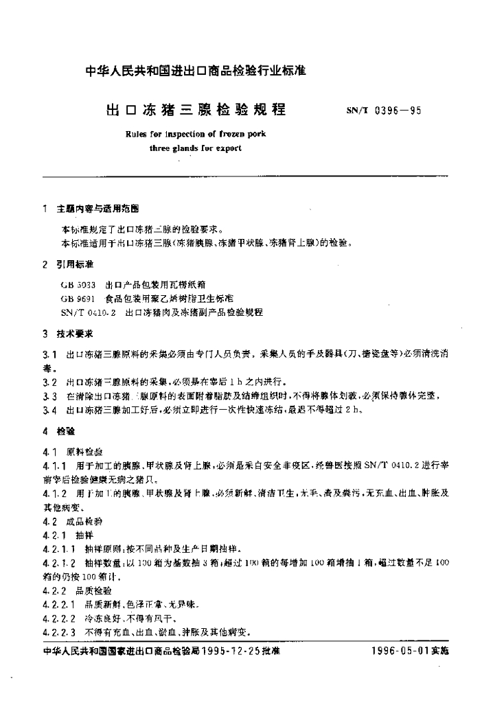 SN/T 0396-1995 出口冻猪三腺检验规程