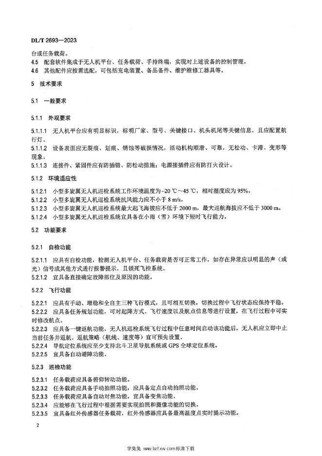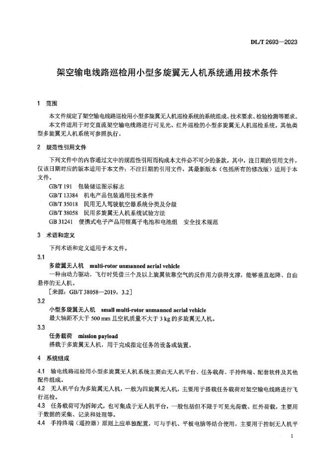 DL/T 2693-2023 架空输电线路巡检用小型多旋翼无人机系统通用技术条件
