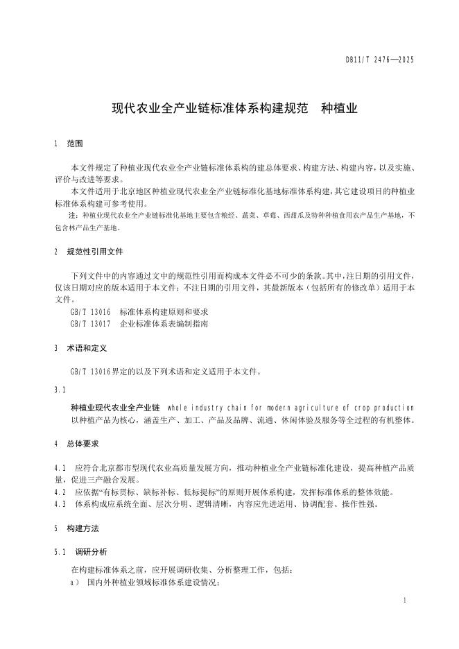 DB11/T 2476-2025 现代农业全产业链标准体系构建规范 种植业