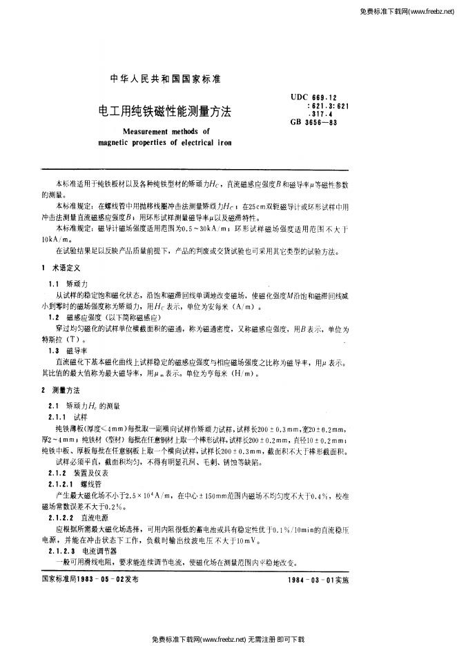 GB/T 3656-1983 电工用纯铁磁性能测量方法