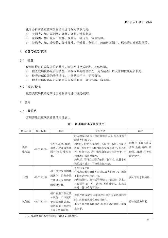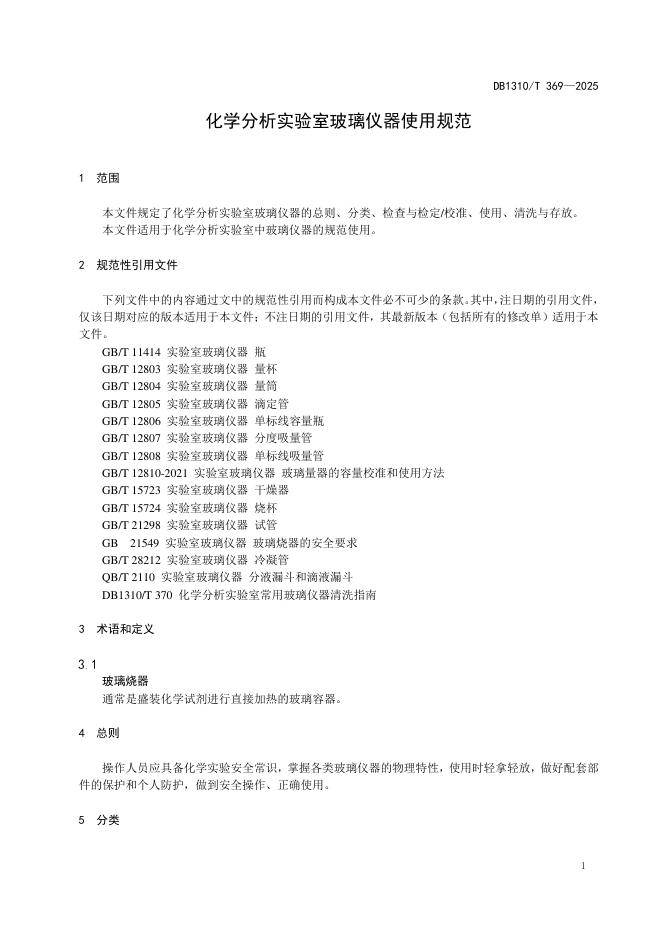 DB1310/T 369-2025 化学分析实验室玻璃仪器使用规范