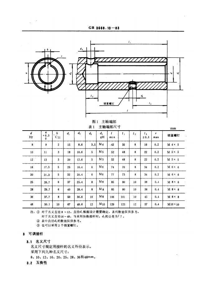 GB/T 3668.10-1983 组合机床通用部件 多轴箱主轴端部和可调接杆尺寸