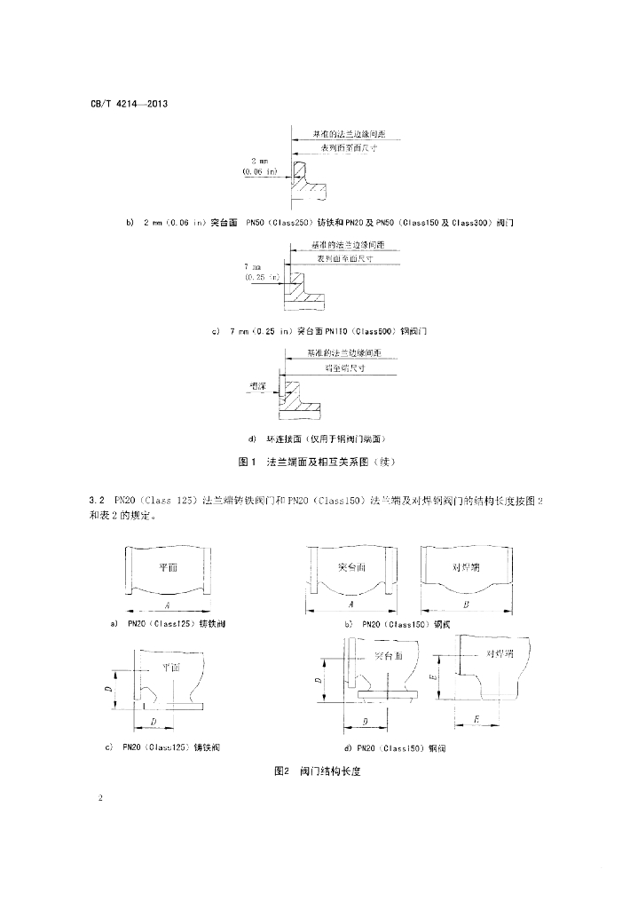 CB/T 4214-2013 A类阀门的结构长度