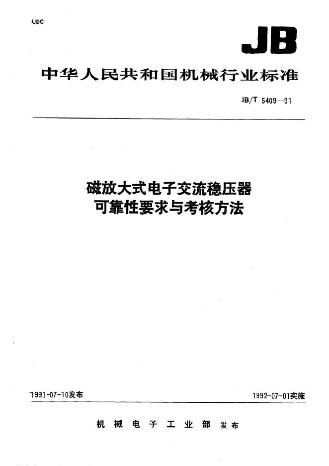 JB/T 5409-1991 磁放大式电子交流稳压器可靠性要求与考核方法