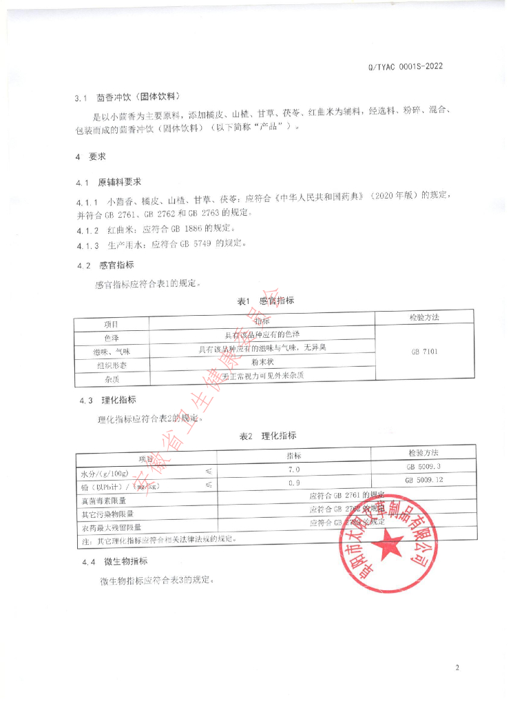 Q/TYAC 0001S-2022 茴香冲饮(固体饮料)