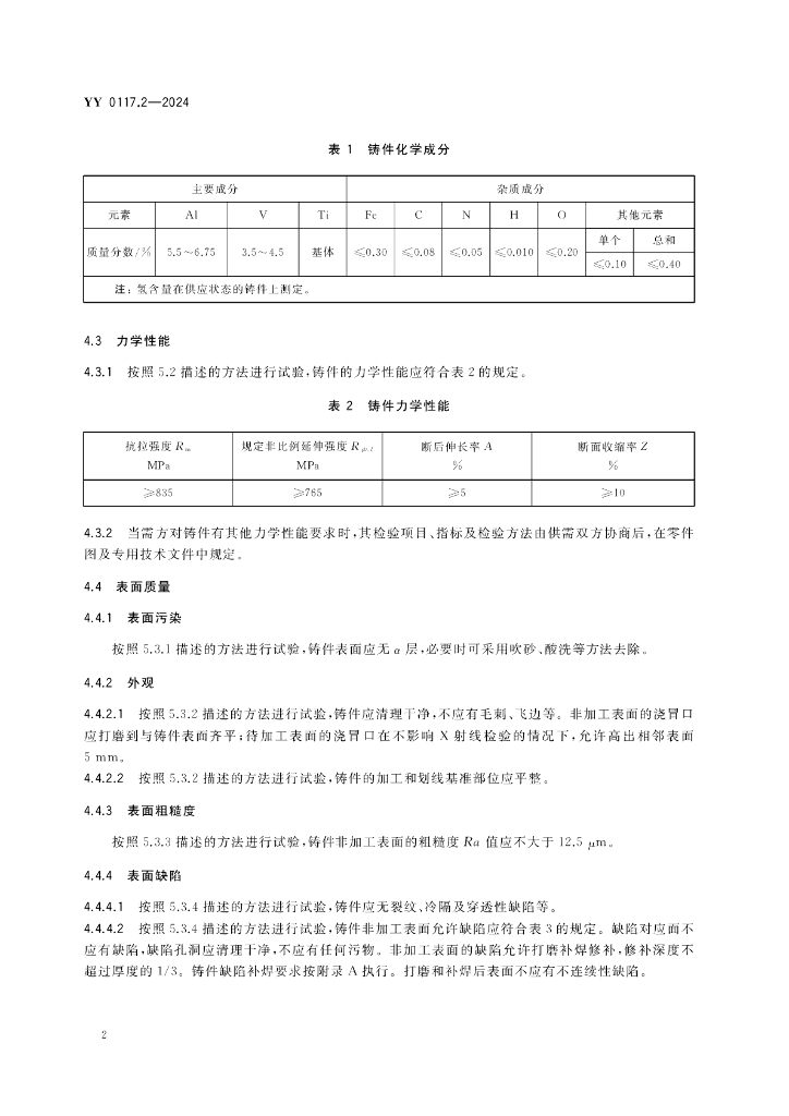 YY 0117.2-2024 外科植入物 骨关节假体锻、铸件 第2部分:ZTi6Al4V钛合金铸件