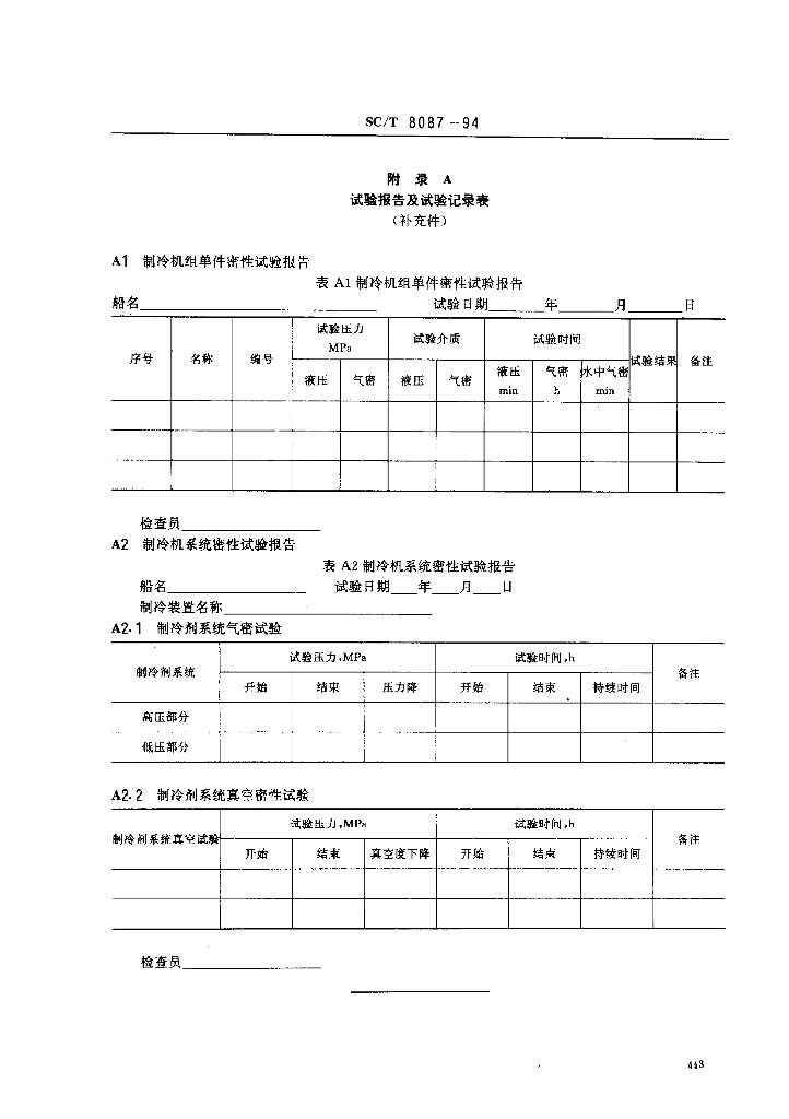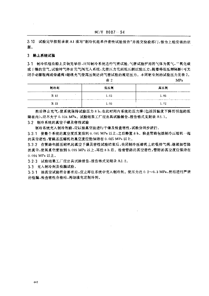 SC/T 8087-1994 渔船制冷系统密性试验技术要求