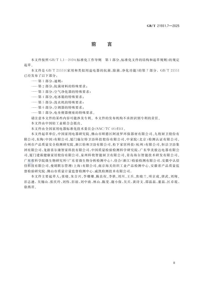 GB/T 21551.7-2025 家用和类似用途电器的抗菌、除菌、净化功能 第7部分:电坐便器便座的特殊要求