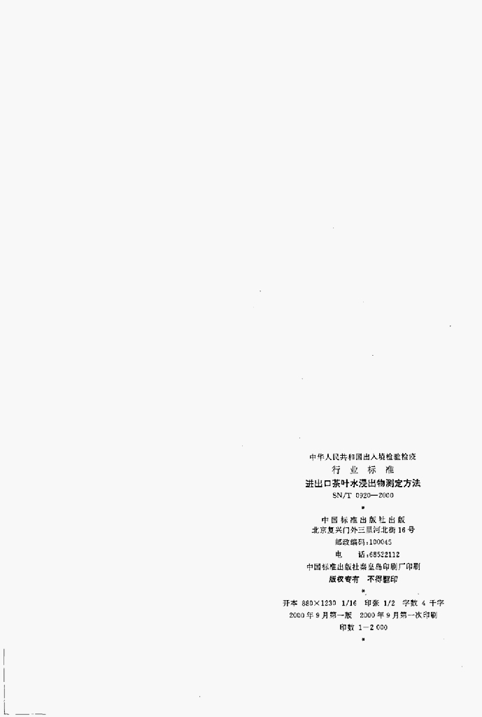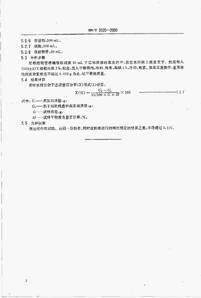 SN/T 0920-2000 进出口茶叶水浸出物测定方法