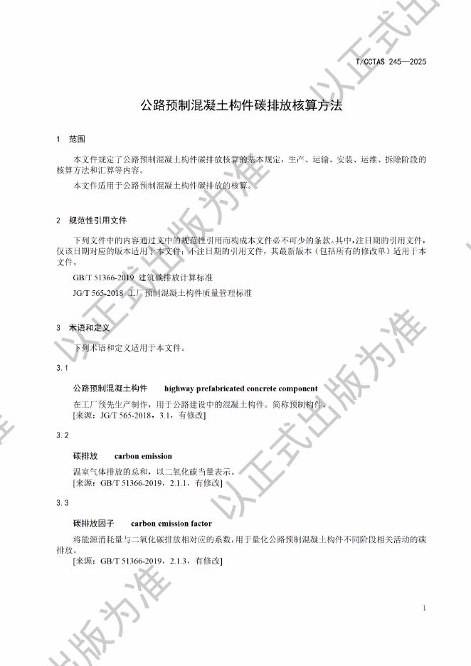 T/CCTAS 245-2025 公路预制混凝土构件碳排放核算方法