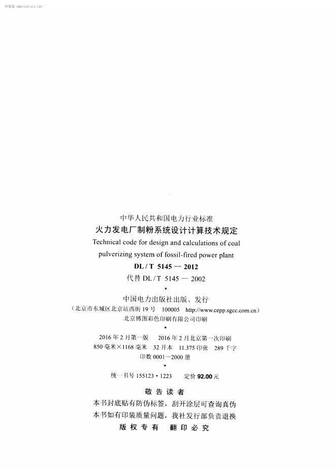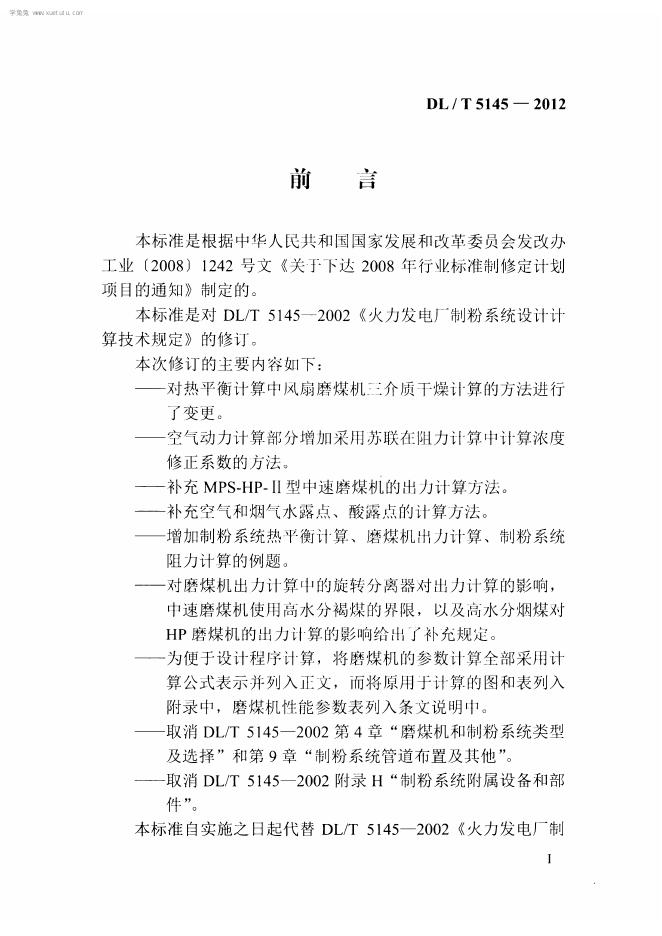 DL/T 5145-2012 火力发电厂制粉系统设计计算设计规范