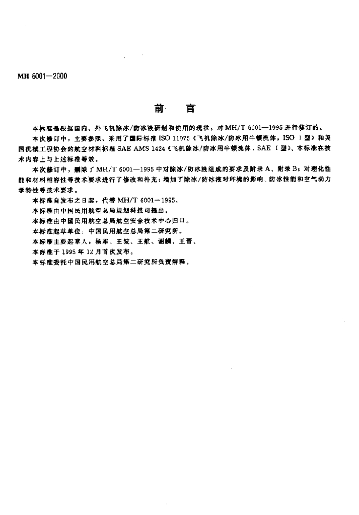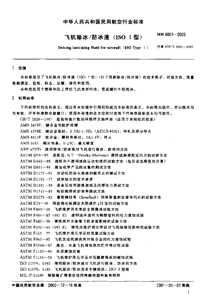 MH 6001-2000 飞机除冰 防冰液(ISO I型)