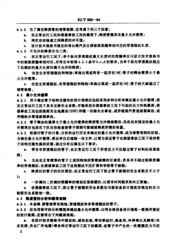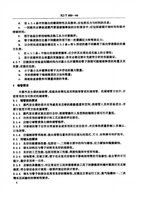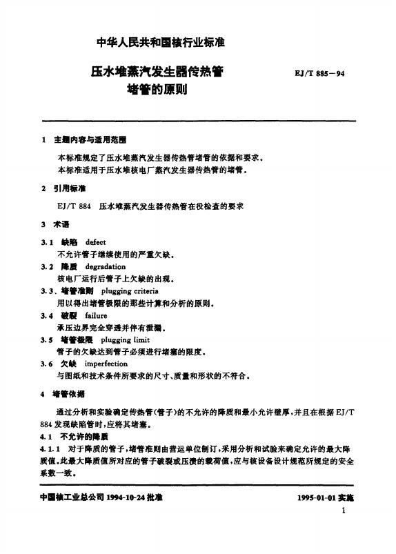 EJ/T 885-1994 压水堆蒸汽发生器传热管堵管的原则