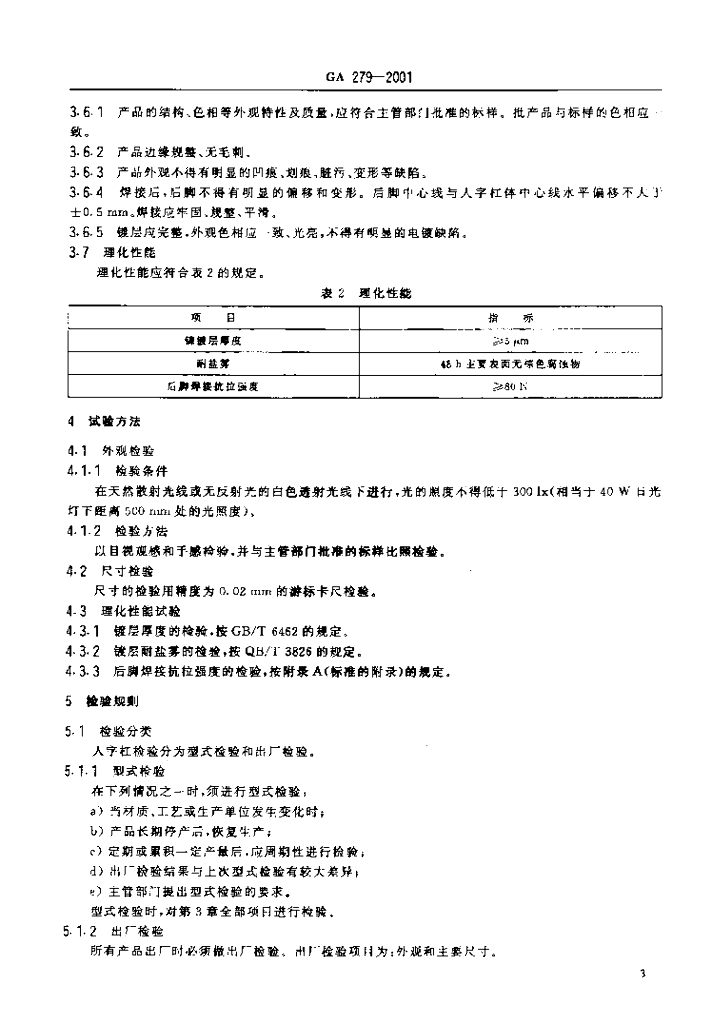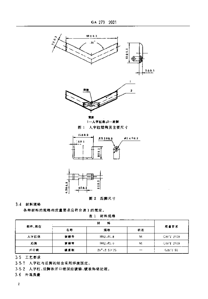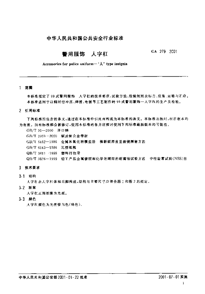 GA 279-2001 警用服饰人字杠