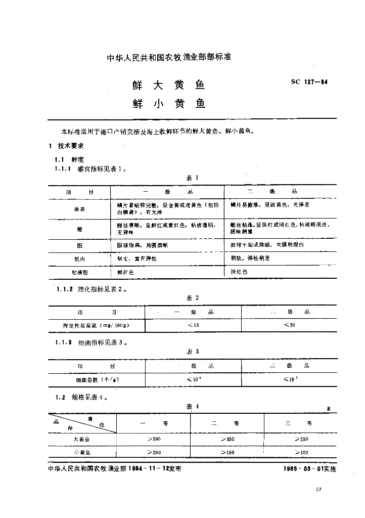 SC 127-1984 鲜大黄鱼鲜小黄鱼