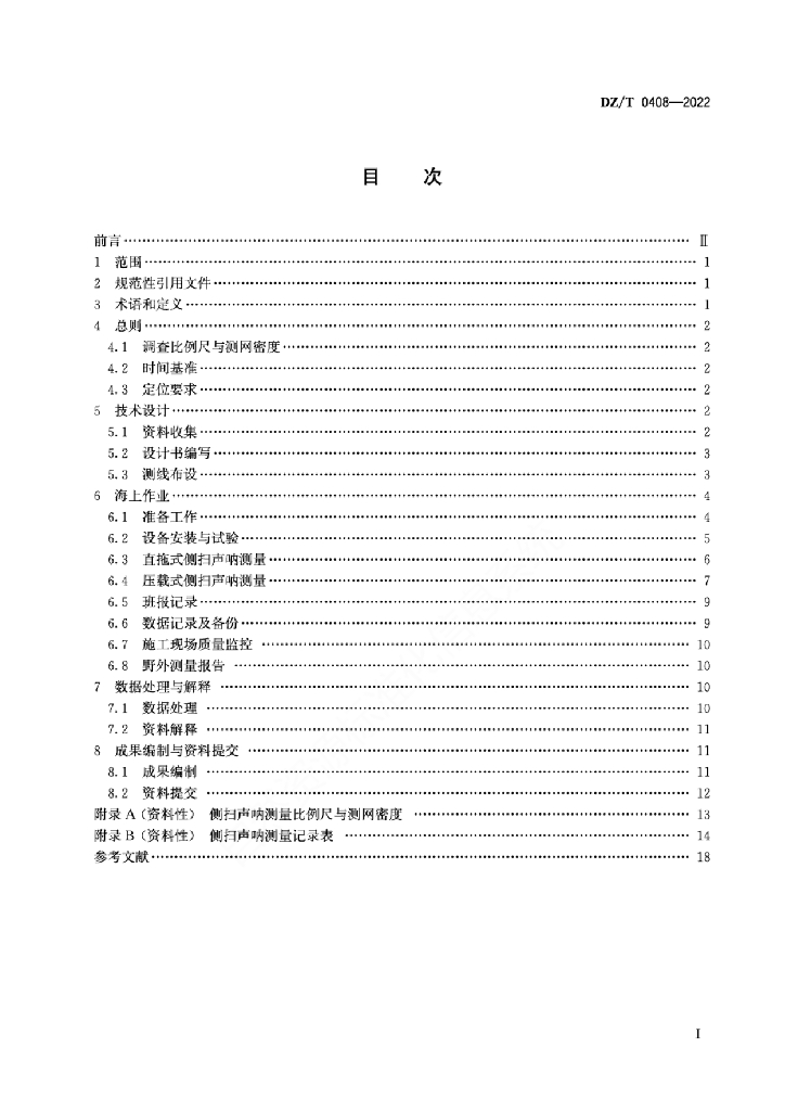 DZ/T 0408-2022 侧扫声呐测量技术规程