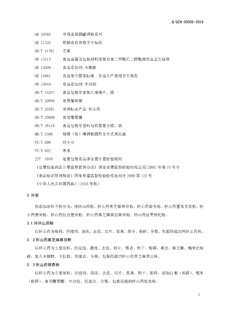 Q/QZH 0003S-2016 沁阳市众德怀药有限公司 怀山药粉和复合怀山药粉