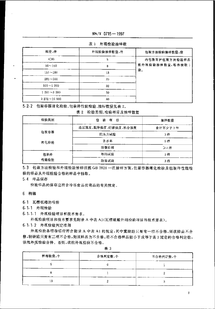 SN/T 0715-1997 出口冷冻食品类商品运输包装检验规程