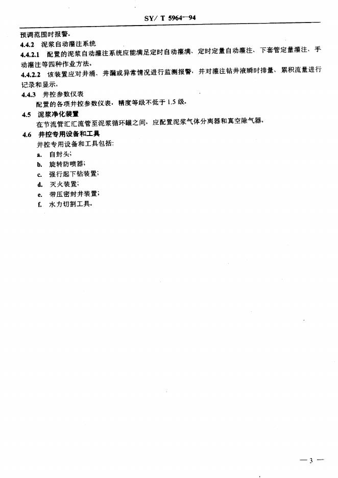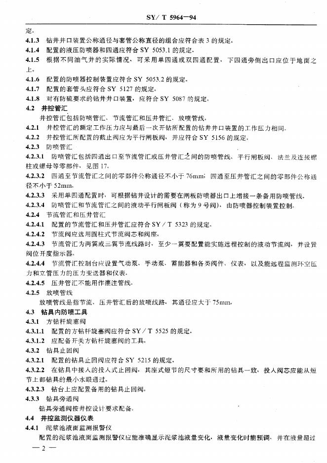 SY/T 5964-1994 钻井井控装置组合配套规范