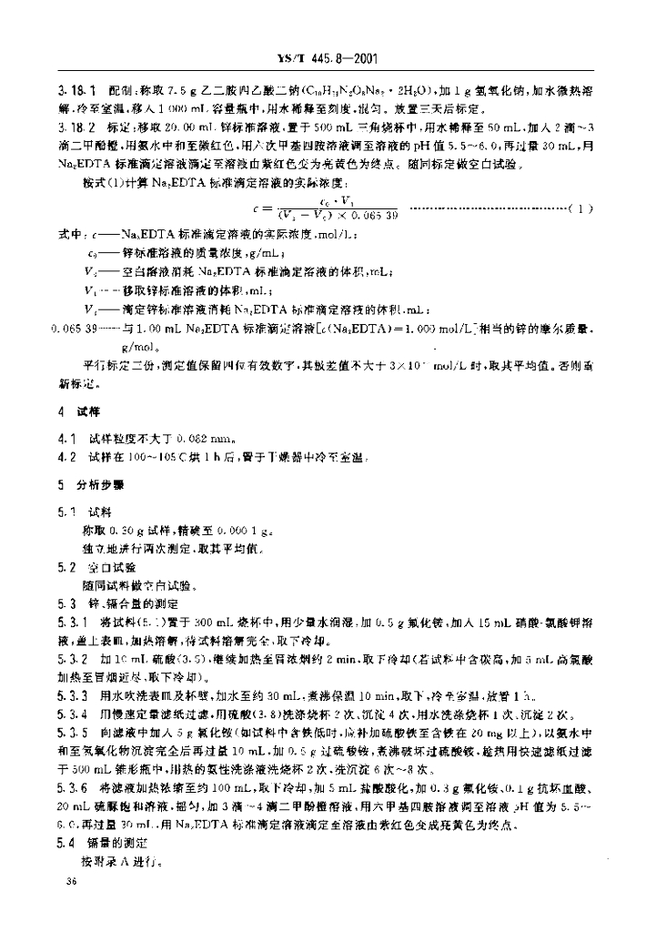 YS/T 445.8-2001 银精矿化学分析方法锌量的测定