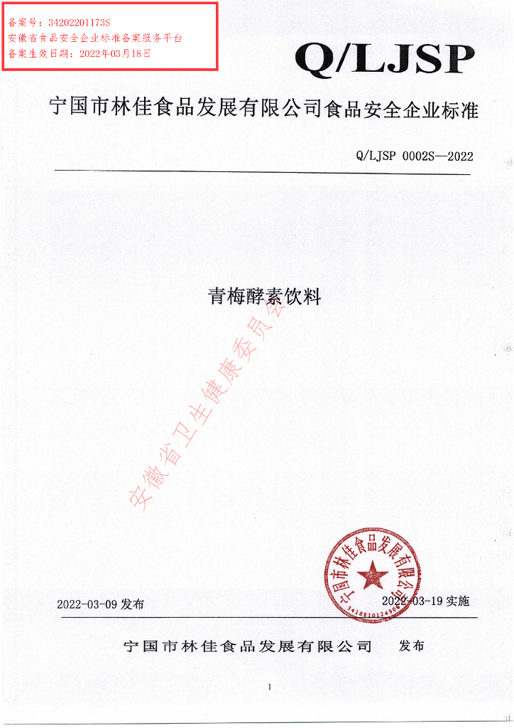 Q/LJSP 0002S-2022 青梅酵素饮料