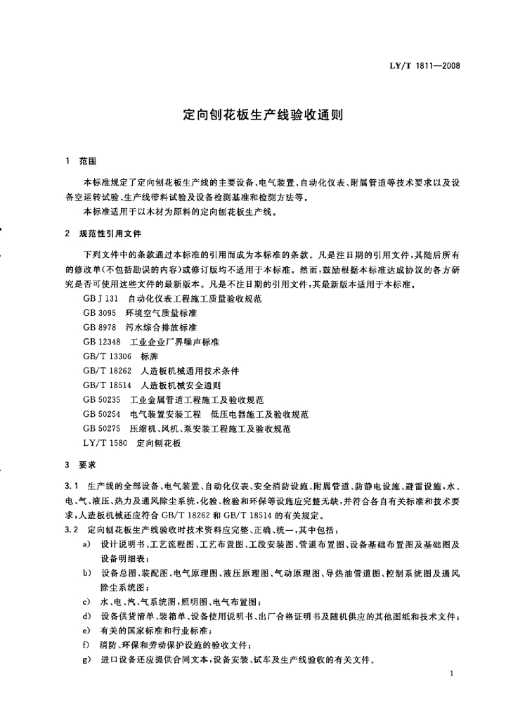 LY/T 1811-2008 定向刨花板生产线验收通则