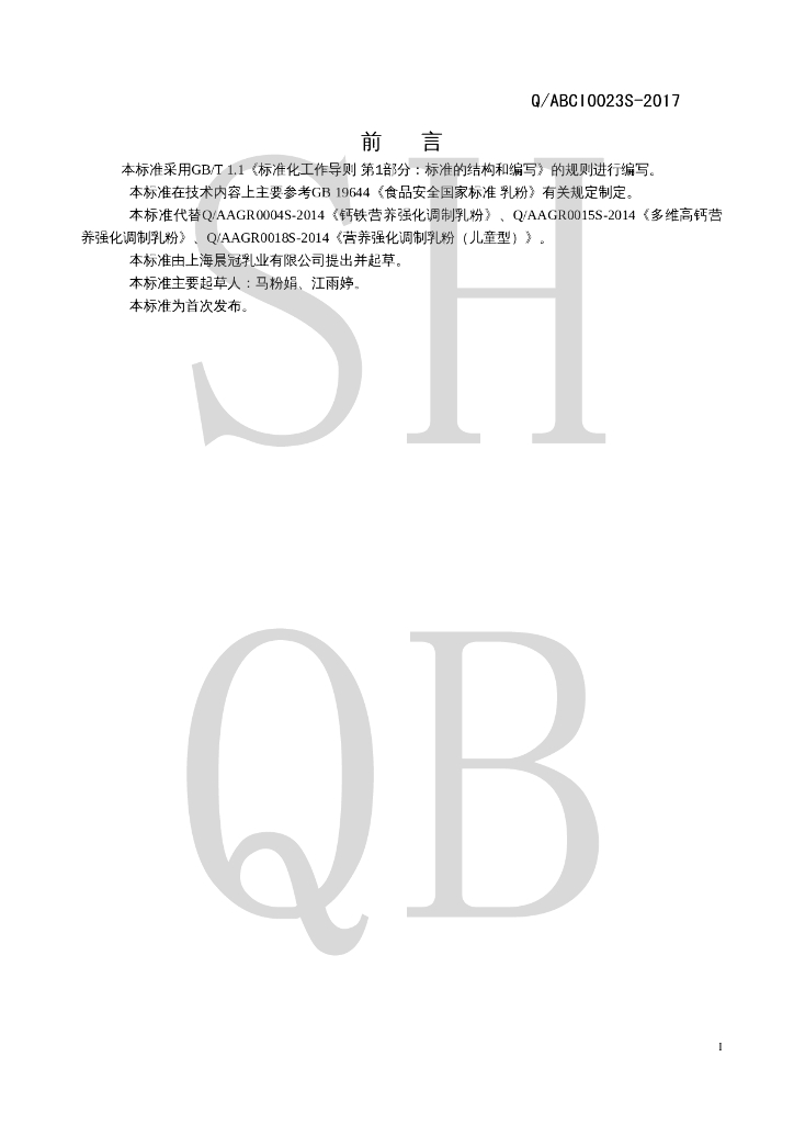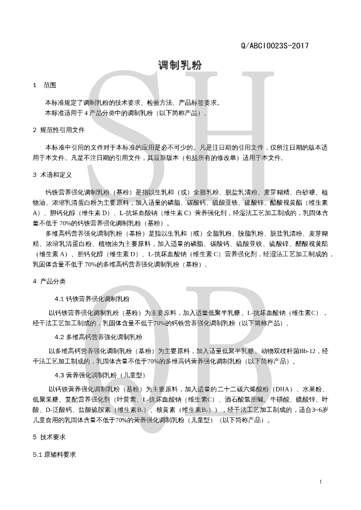 Q/ABCI 0023S-2017 调制乳粉