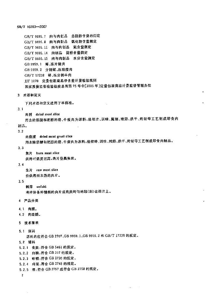 SB/T 10283-2007 肉脯