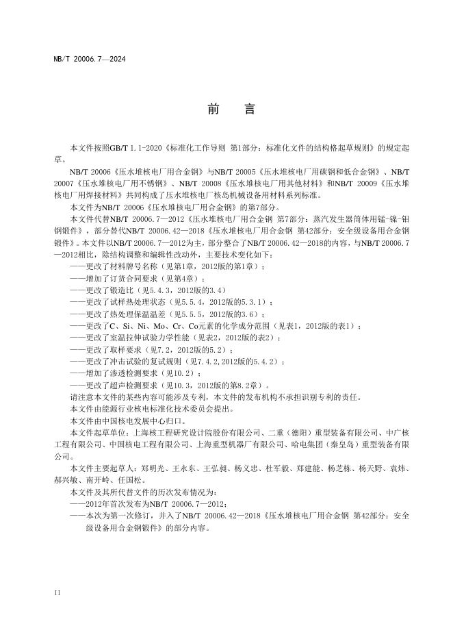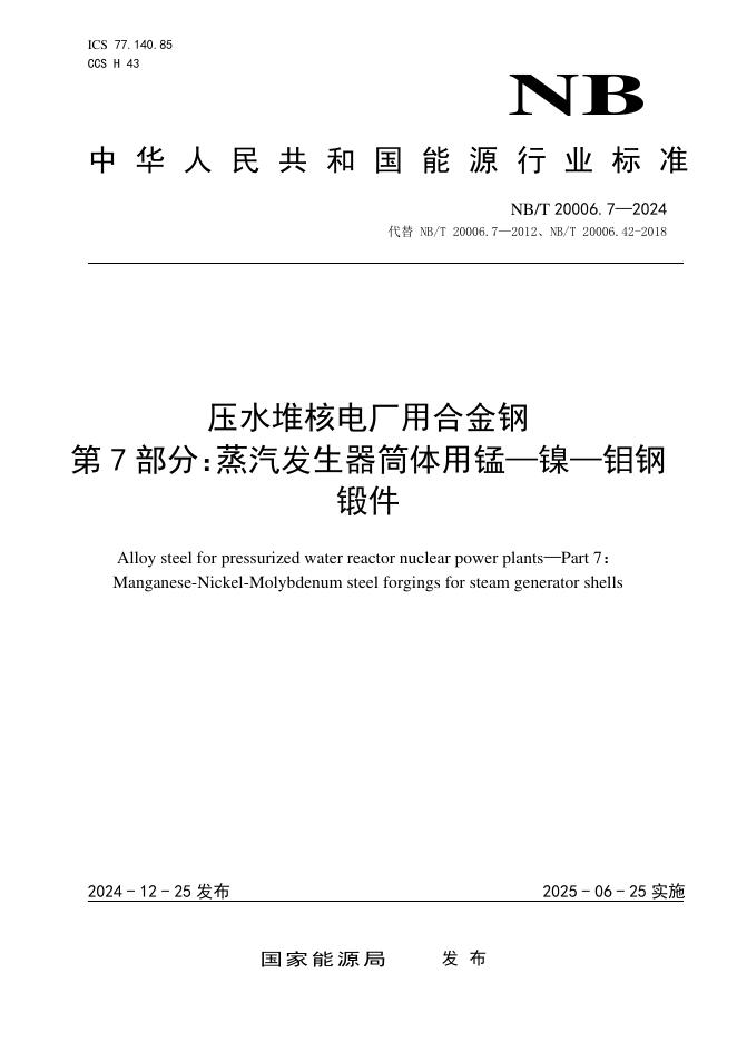 NB/T 20006.7-2024 压水堆核电厂用合金钢 第7部分:蒸汽发生器筒体用锰—镍—钼钢锻件