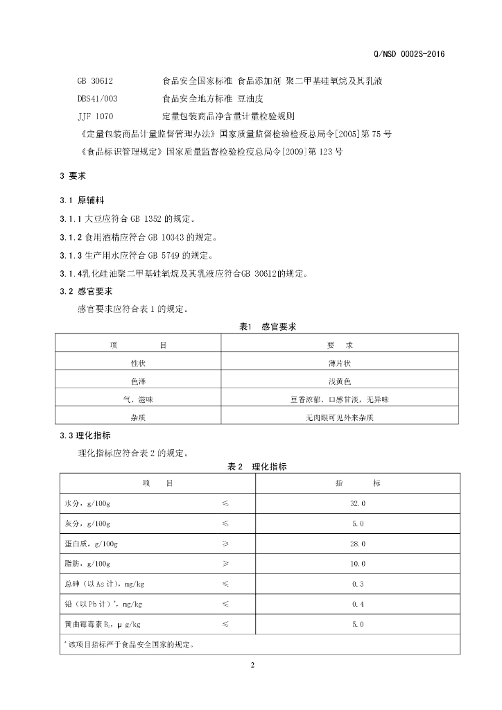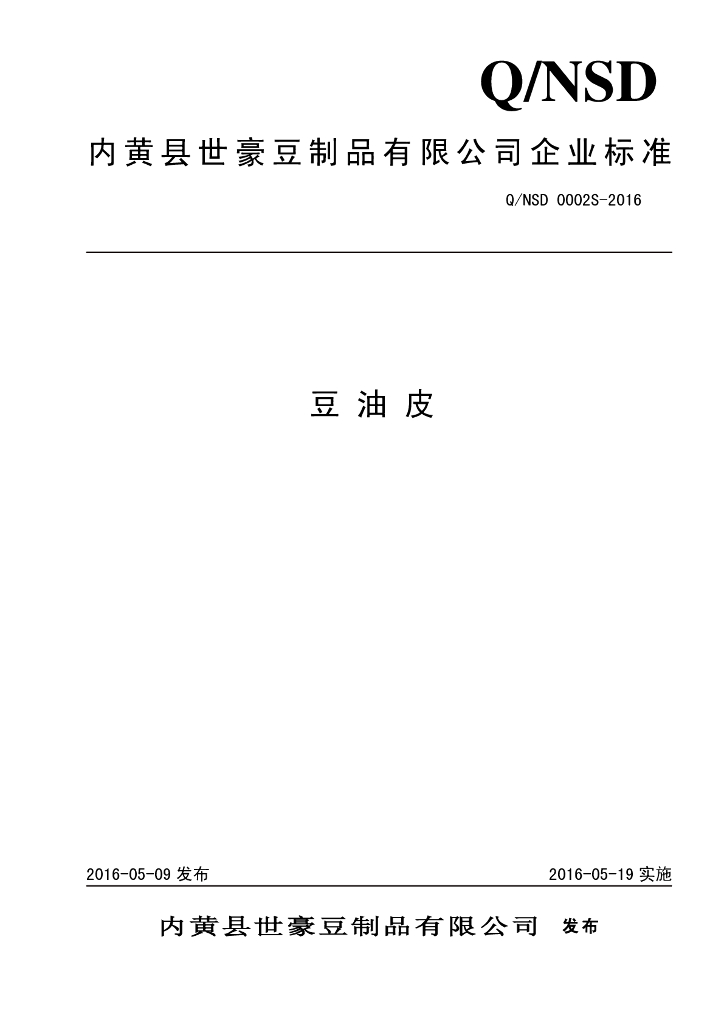 Q/NSD 0002S-2016 内黄县世豪豆制品有限公司 豆油皮