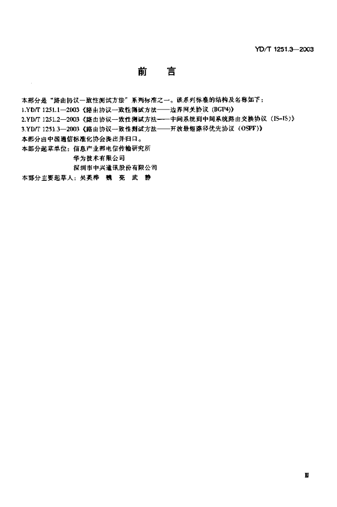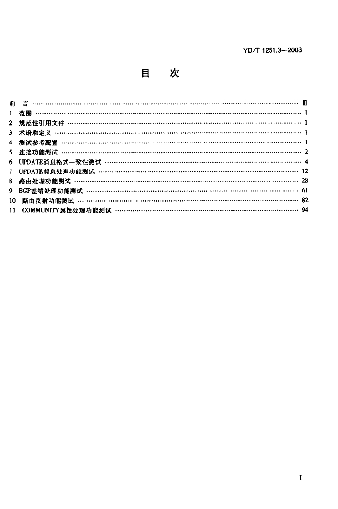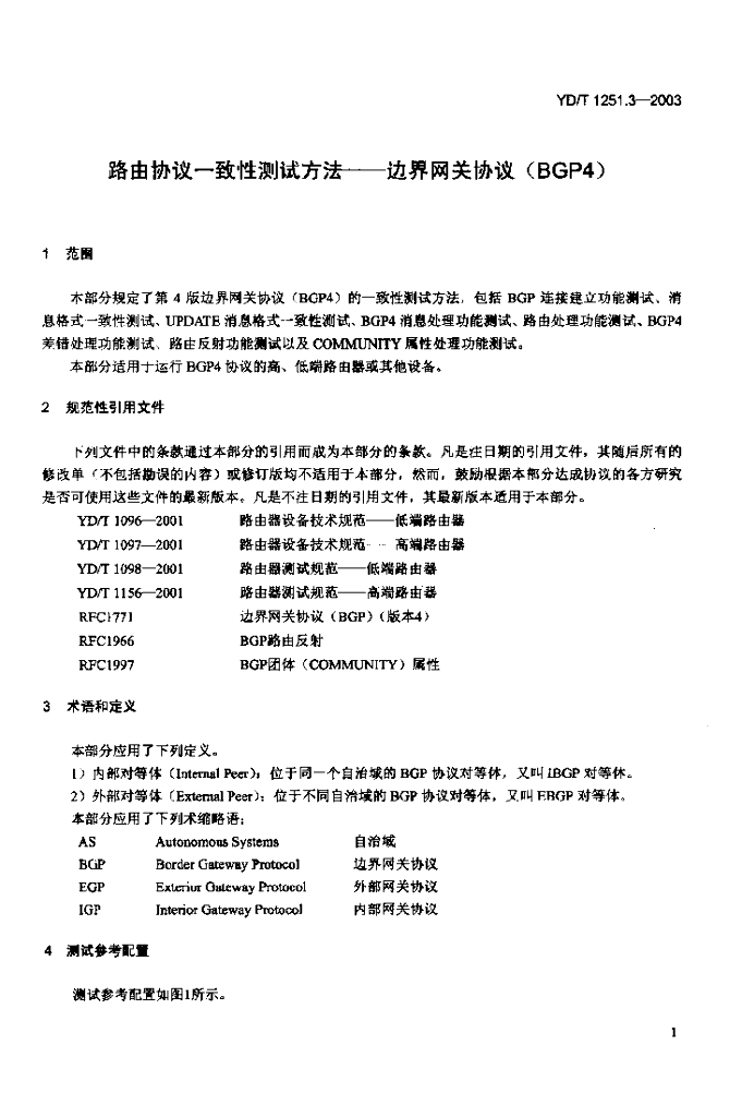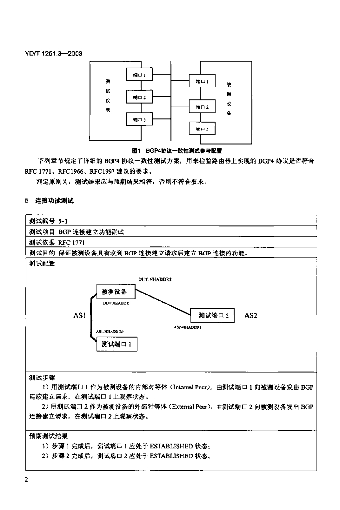 YD/T 1251.3-2003 路由协议一致性测试方法——边界网关协议(BGP4)